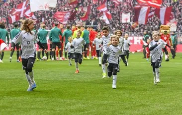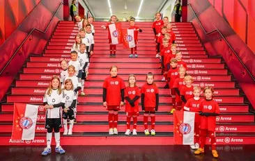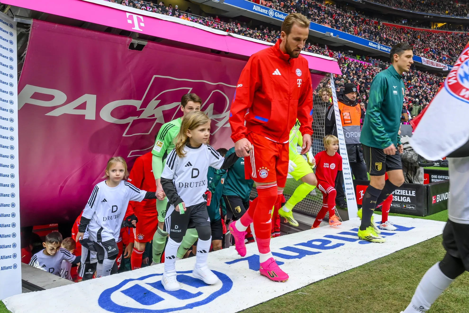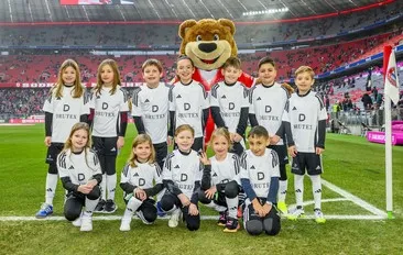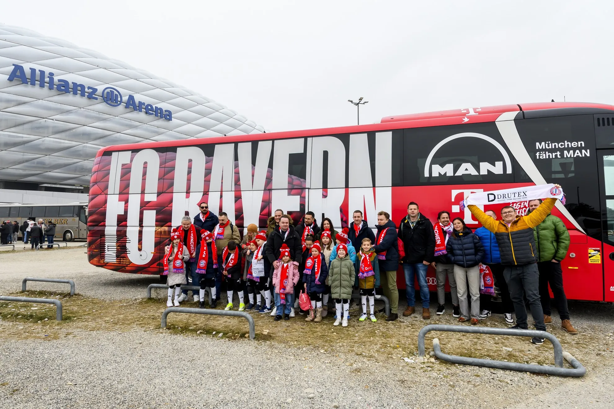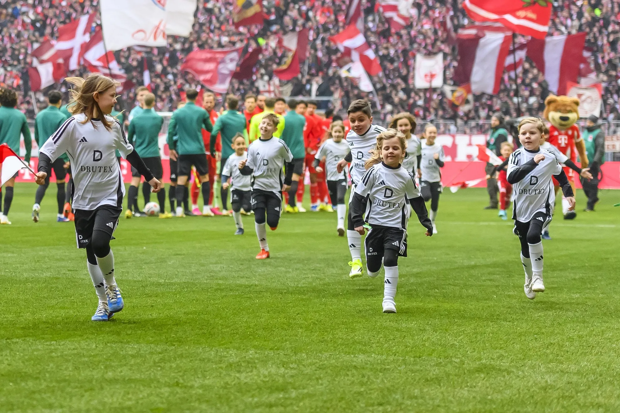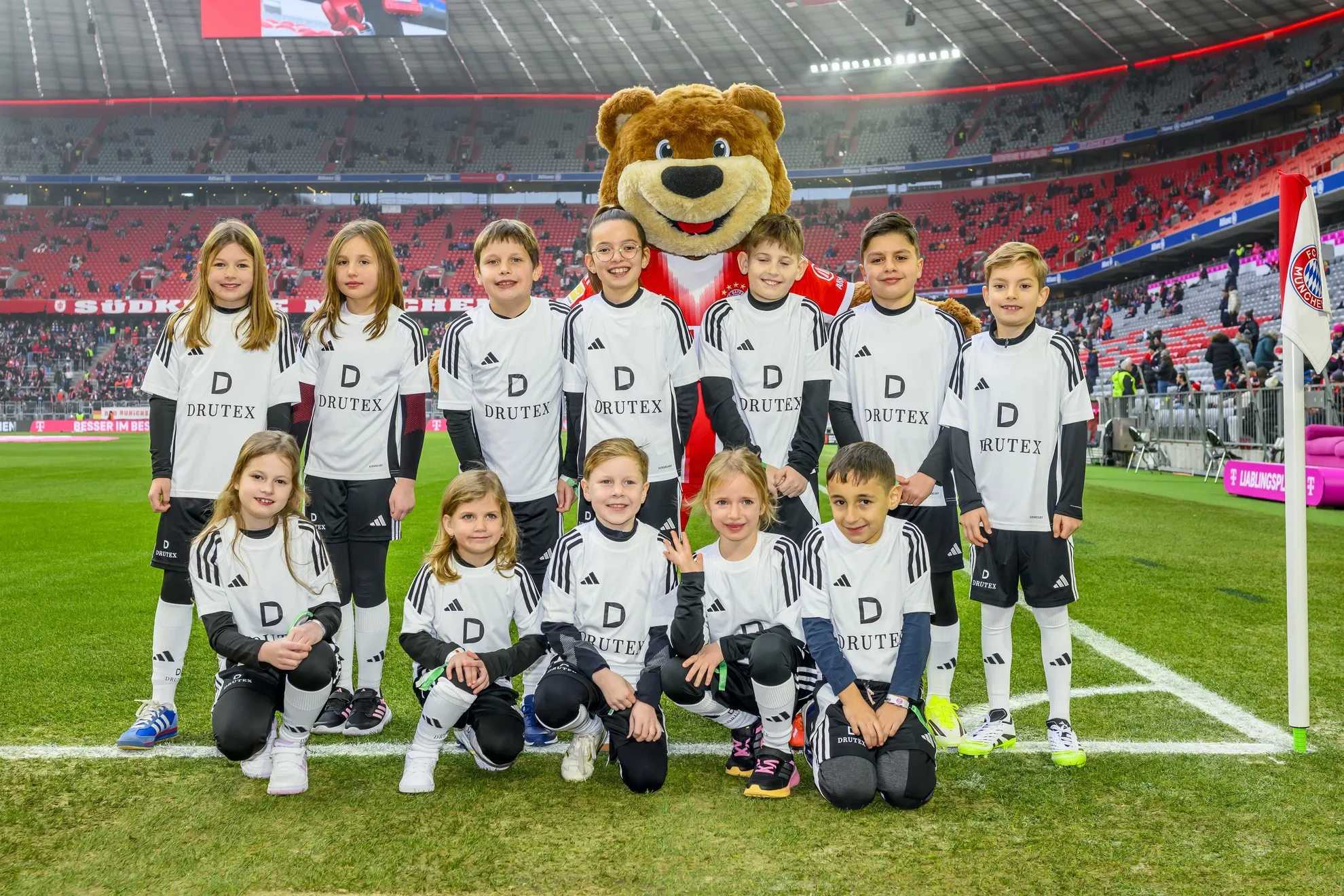 The highlight of the event was the player entrance onto the pitch before the match against FC Augsburg. One participant had the honor of carrying the flag, while the remaining 11 children accompanied the players, holding their hands and walking onto the pitch in front of the full stands of the Allianz Arena, which hosted 75,000 spectators that day. All children wore official Drutex-branded jerseys, creating an unforgettable image of pride and emotion.