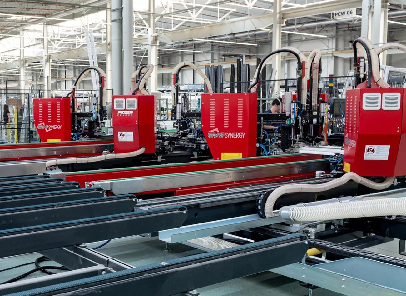 Daugiau nei 11 hektarų dydžio gamybos cechuose gaminame langus, duris, roletus, žaliuzes, fasadus ir žiemos sodus. Siūlome gaminius iš PVC, aliuminio ir medžio. Kasmet skiriame kelis šimtus milijonų zlotų investicijoms į naujausią įrangą, gamybos priemones, naujus gamybos cechus, transporto parką ir žmones. Bendradarbiaujame su atitinkamų sričių lyderiais.