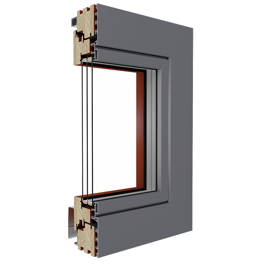 Unikali stumdomųjų durų sistema, sukurta iš medžio ir aliuminio derinio.