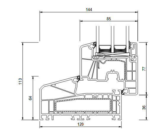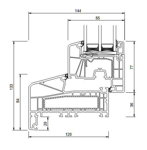 120 mm (B - išorinės nuolaidos profilis)